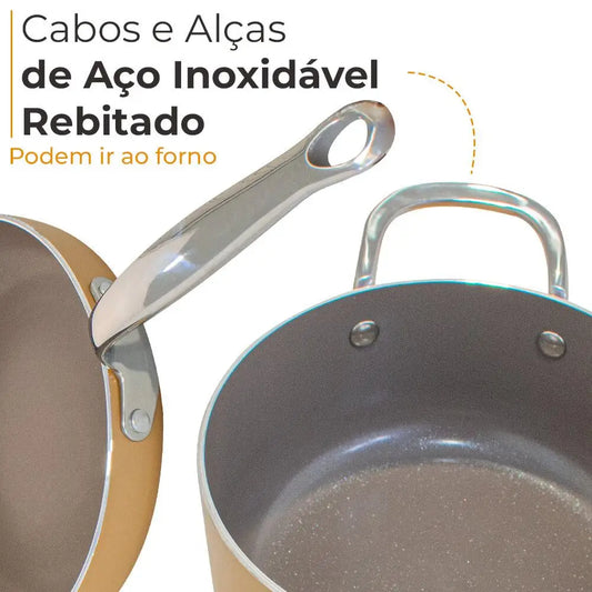 Jogo De Panelas Antiaderente Indução Ceramic Life Coast Champanhe 4 Peças - Brinox