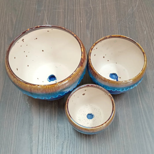 Conjunto 3 Peças Cachepô Azul em Cerâmica – Elegância Natural para Decorar com Plantas