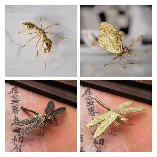 Escultura Decorativa de Metal – Formiga ou Borboleta Dourada em Liga de Zinco