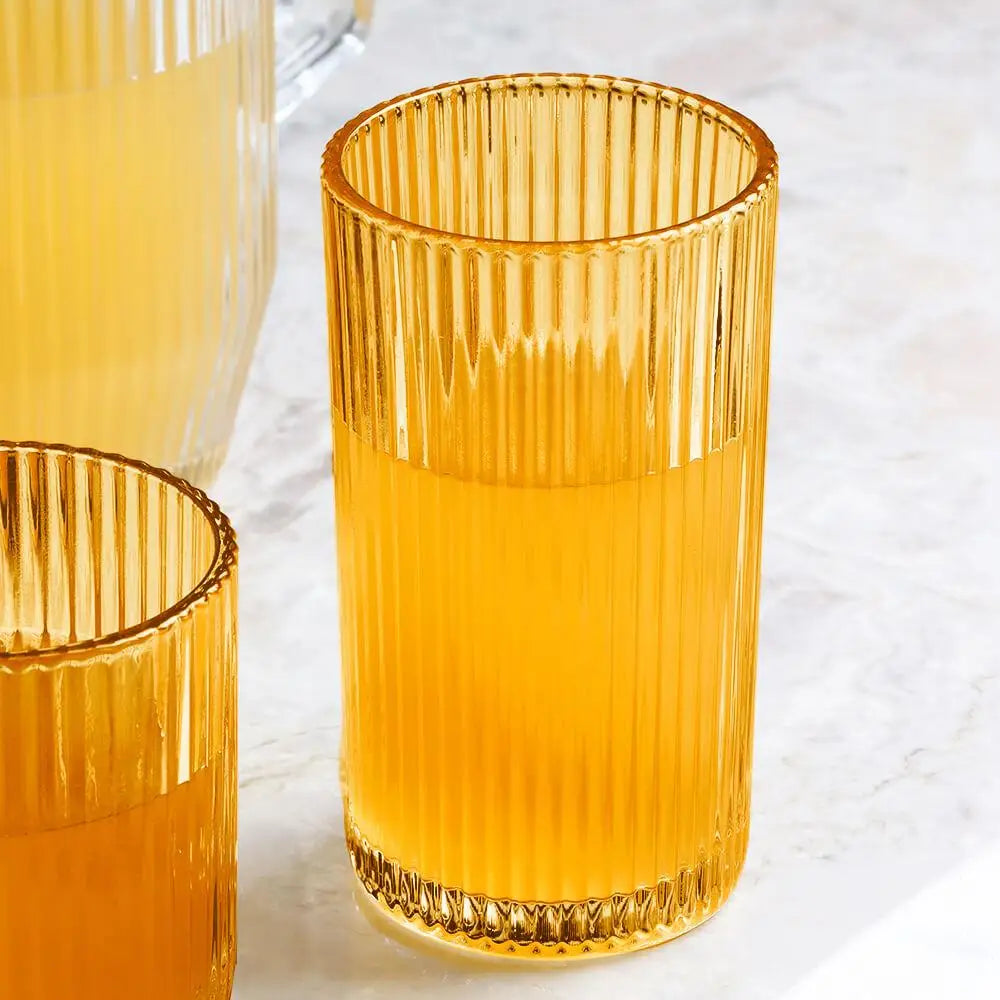 Jogo De Copos De Vidro âmbar Graffiato Long Drink 420ml 6 Peças - Hauskraft